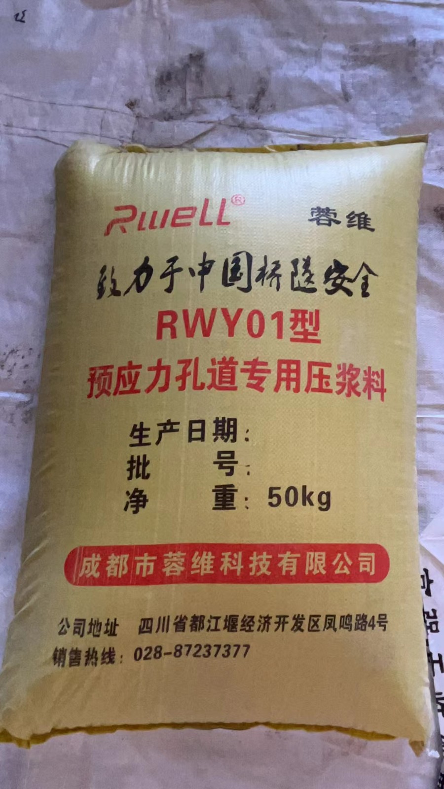 由水泥、高效減水劑、膨脹劑和礦物摻合料等多種材料干拌而成的混合料,在施工現(xiàn)場按一定比例加水并攪拌均勻后,用于充填后張預(yù)應(yīng)力孔道的壓漿材料,該產(chǎn)品具有穩(wěn)定性高、低水膠比、高流動度、零泌水、微膨脹、耐久性好等優(yōu)點。